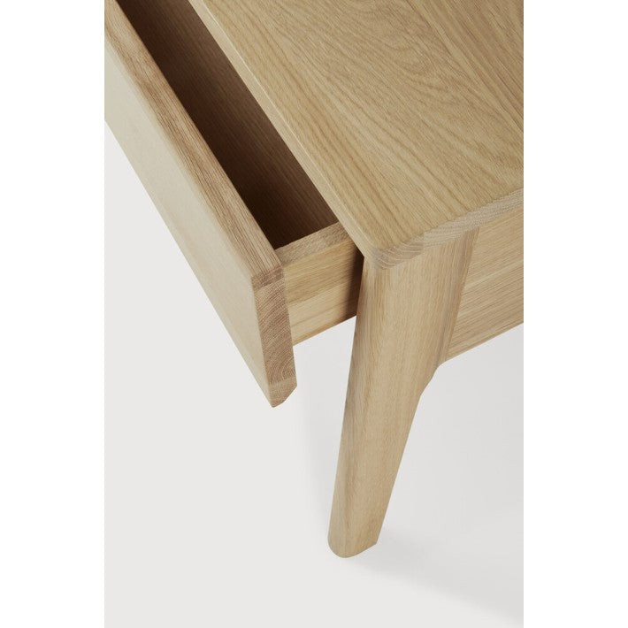 Cuenta con un cajón. De roble macizo con un acabado al aceite de cera dura.