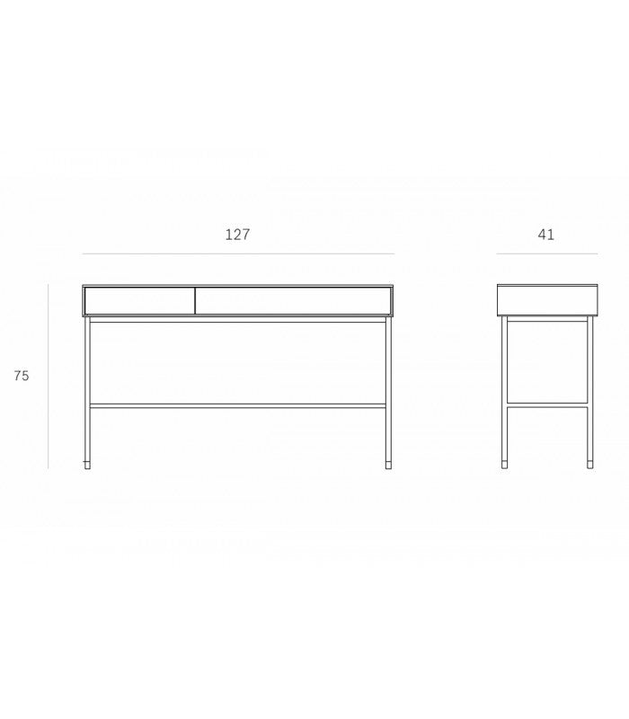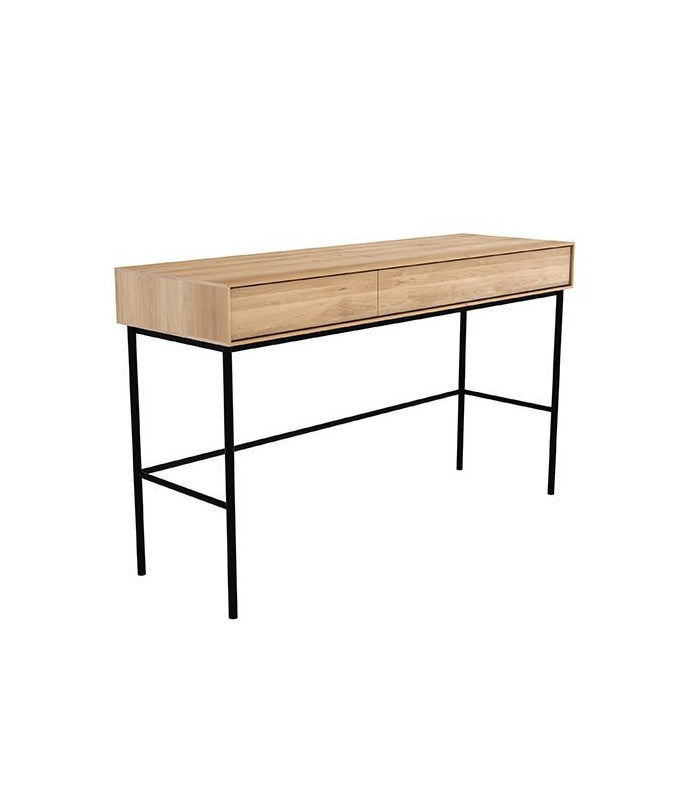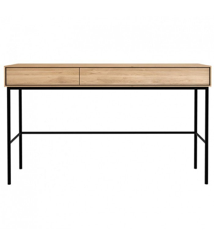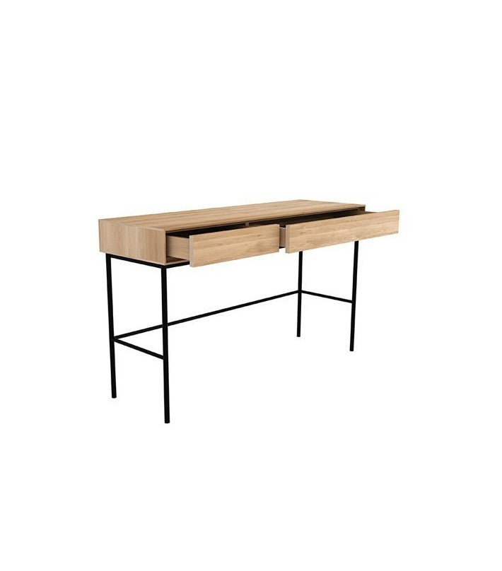 Para la colección Whitebird, el diseñador Alain Van Havre une elementos opuestos, combinando suaves patas redondas y llamativas líneas gráficas en diseños ligeros, simples y elegantes. El escritorio Whitebird Roble tiene una puerta corredera y dos cajones. También disponible en negro, colección Blackbird.