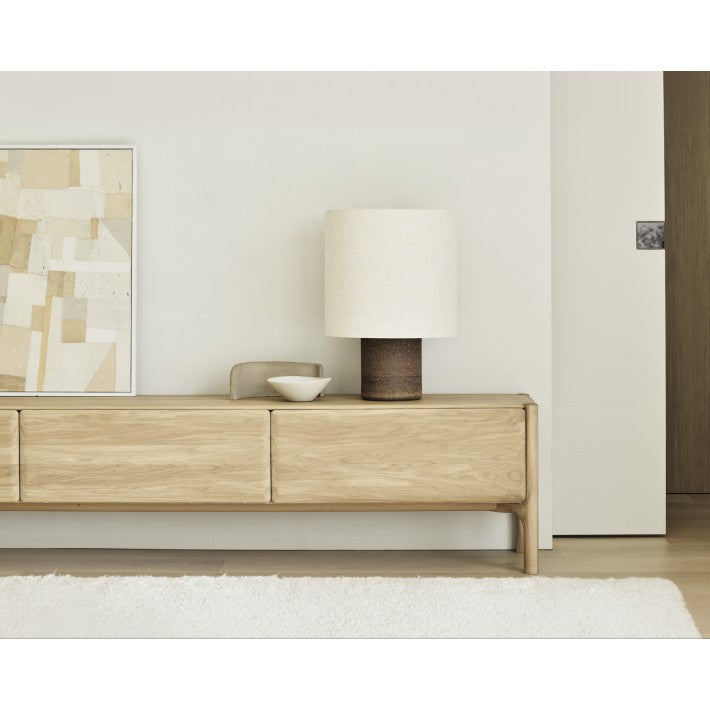 La colección PI rinde homenaje al diseño natural, conservando la fuerza, las curvas y las líneas tal como la naturaleza las creó. Las formas intrigantes emergen en este acabado pulido y ligeramente imperfecto, que combina elegancia y estilo. Cada pieza de la colección PI se termina a mano, garantizando la preservación del carácter único de la madera. El mueble para televisión PI es una pieza excepcional que proporciona una solución de almacenamiento sofisticada para cualquier salón.