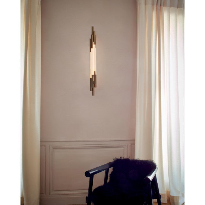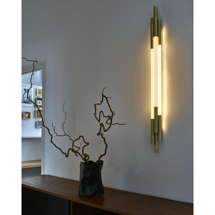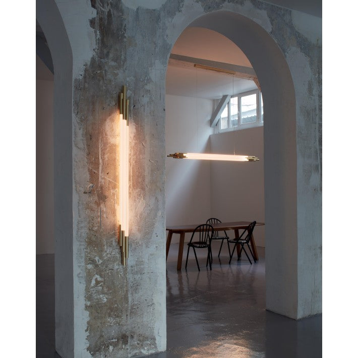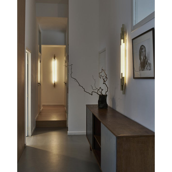 El aplique ORG W 1500 de DCW Editions Paris combina inspiración futurista y sofisticación en un diseño único. Creado por el diseñador Sebastian Summa, este aplique evoca la estética de la ciencia ficción con su estructura en latón dorado y cristal opalino, que difunde una luz cálida y envolvente.