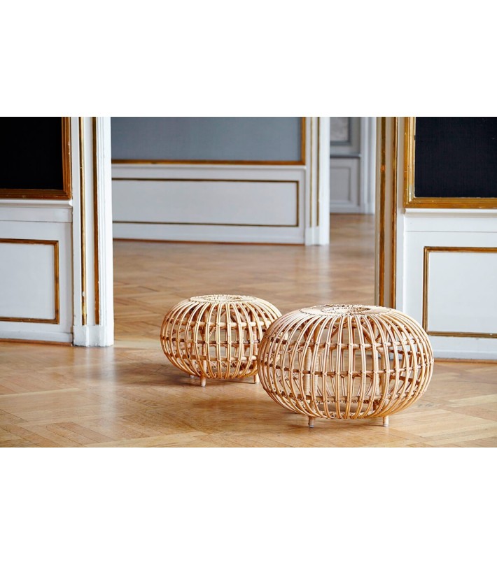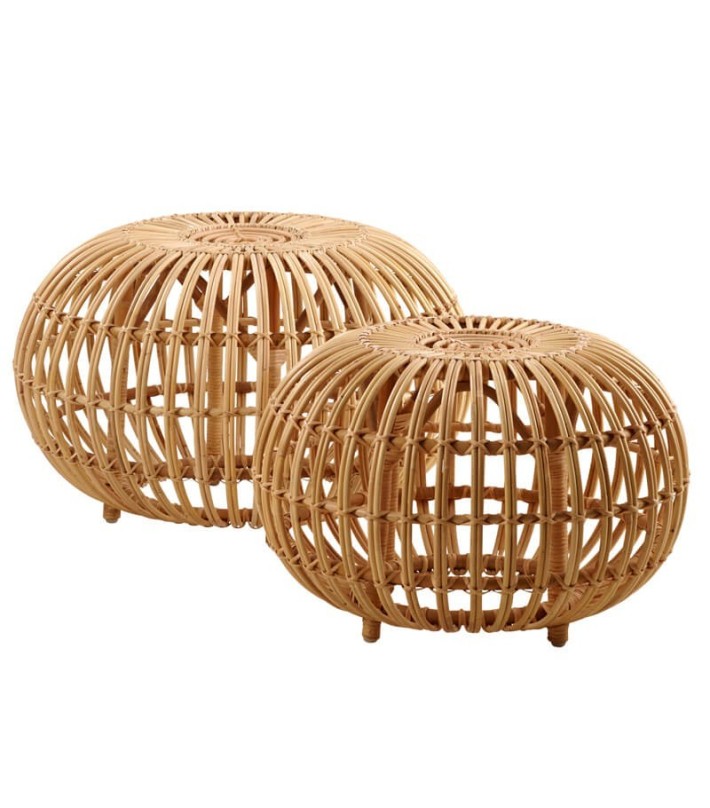 Este pouf está hecha de ratán natural. Disponible en dos medidas.