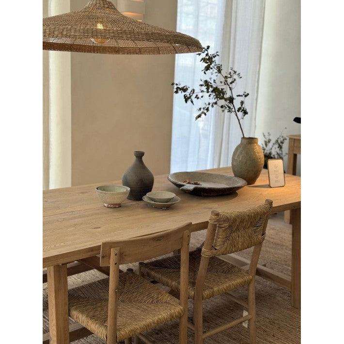 Cada pieza es única: las irregularidades en el trenzado reflejan su carácter artesanal y aportan autenticidad a tu decoración. Puedes combinarla fácilmente con nuestros kits de suspensión con enchufe para personalizar el ambiente a tu estilo.