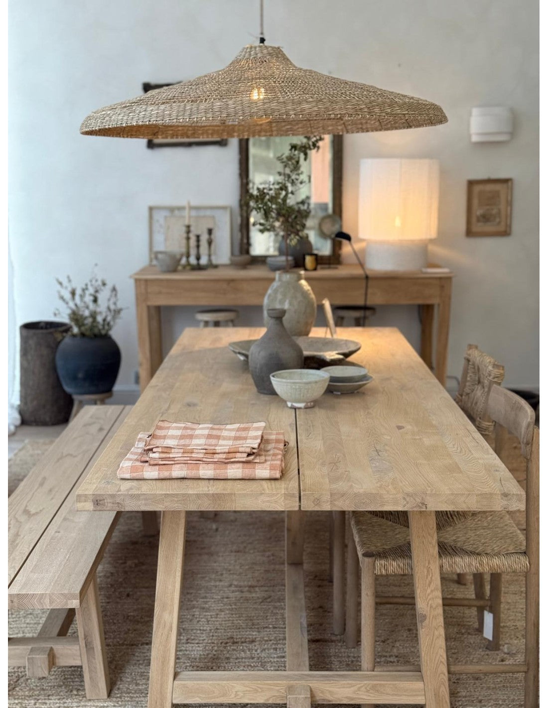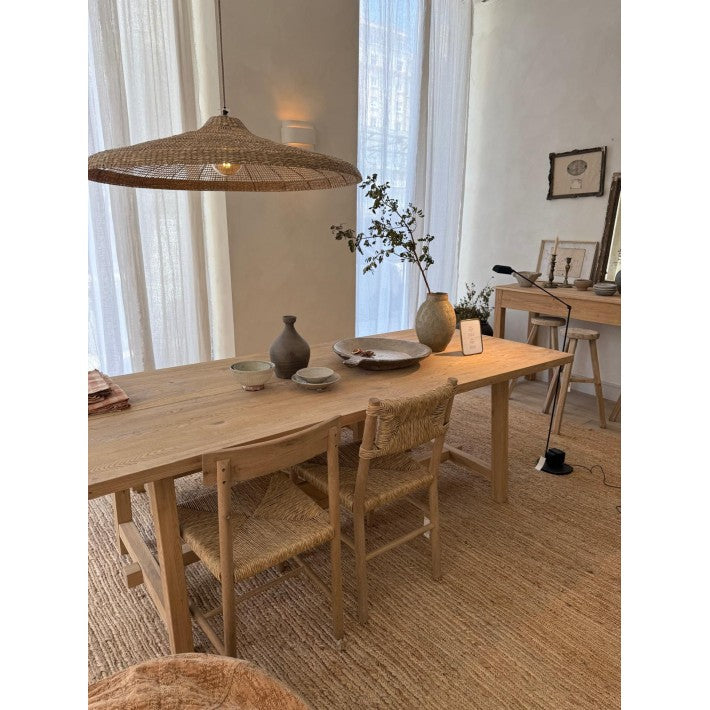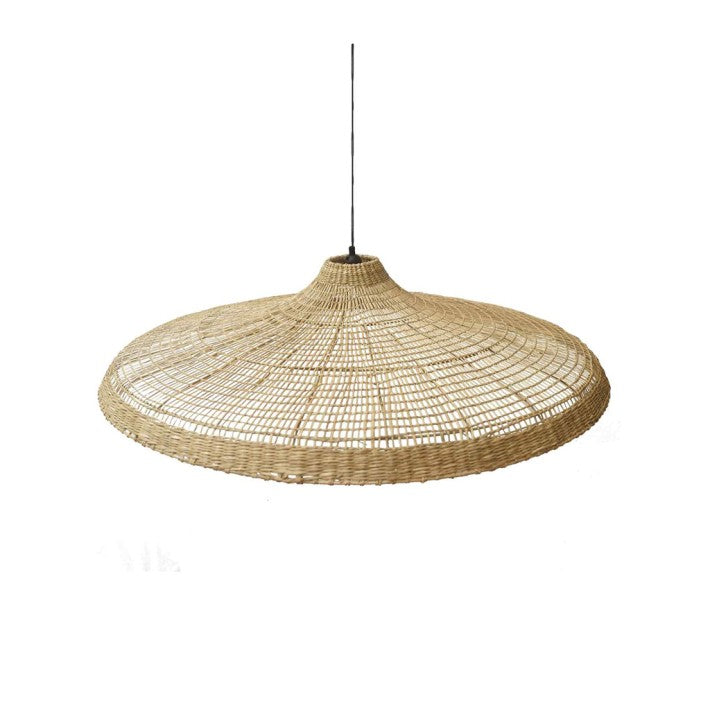 Ligera, delicada y versátil, la pantalla colgante Solstice PM (Ø75 cm) está tejida a mano con juncos de mar, aportando textura y calidez natural a cualquier espacio. Su tamaño mediano la hace ideal para iluminar rincones especiales, pasillos amplios o habitaciones con techos bajos.