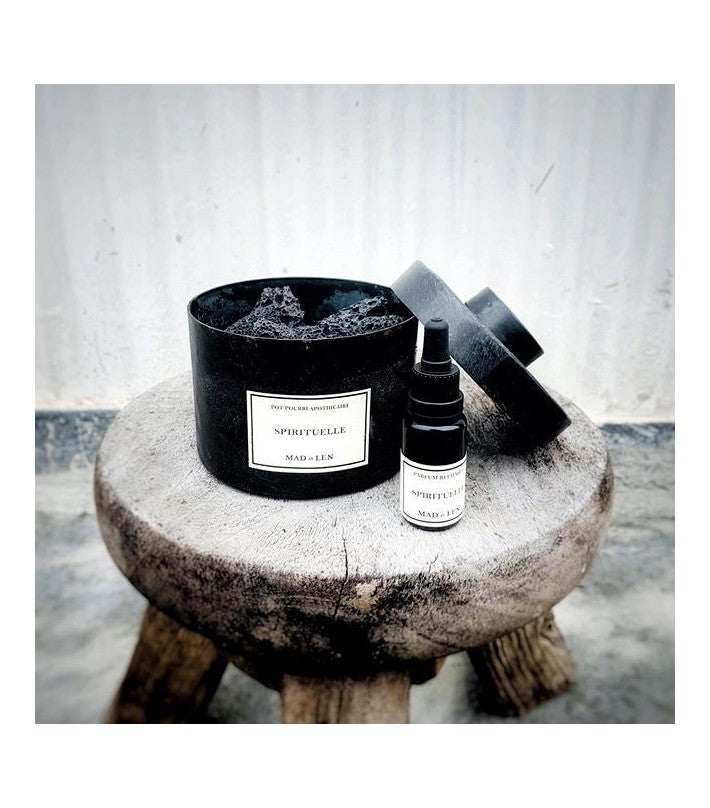 Popurrí "Spirituelle" en resina negro de Mad Et Len con roca volcánica.