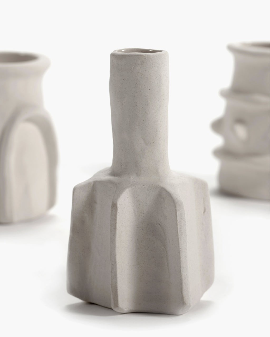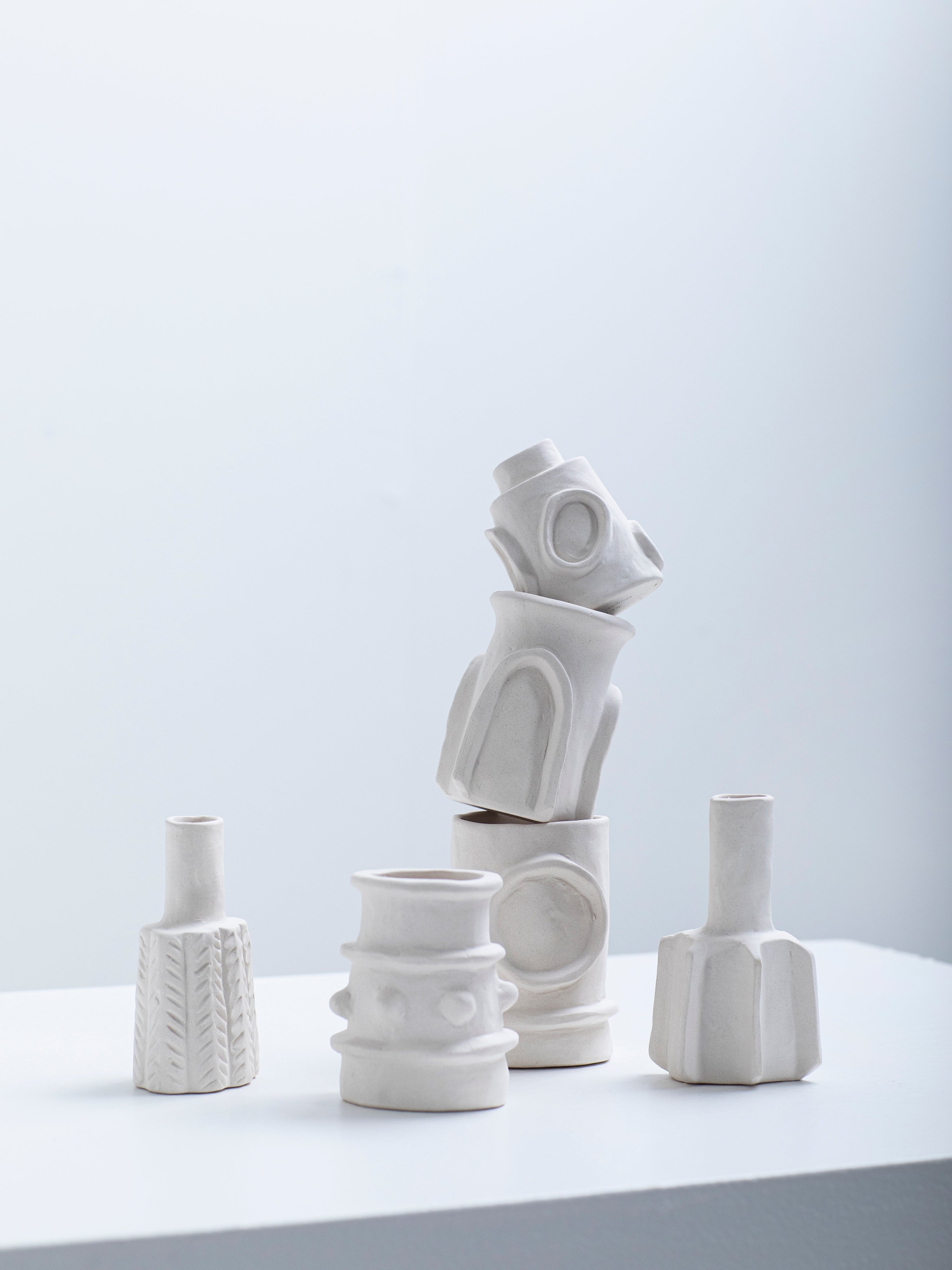 Diseñador Marie Michielssen. La colección de platos, macetas y lámparas hechas de papel maché juega con los volúmenes. "Con los jarrones de papel maché, siento que mi lenguaje visual se acerca cada vez más a lo escultural", dice la diseñadora Marie Michielssen. La diseñadora no pone nada en papel de antemano, no realiza dibujos técnicos ni modelos 3D en la computadora. En el proceso de diseño, Marie Michielssen prefiere dejar que el material hable por sí mismo.