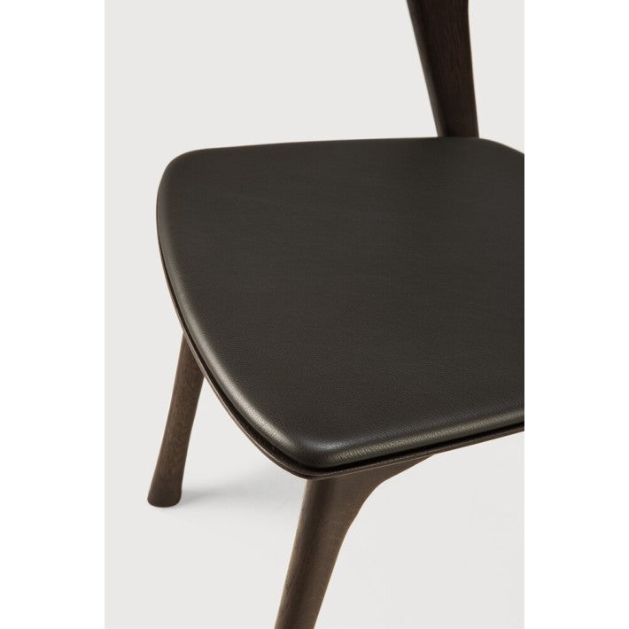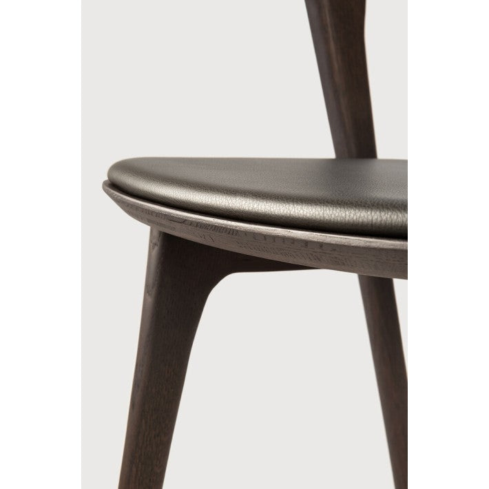 De roble macizo teñido de marrón con acabado barnizado. Tapizado en piel marrón.