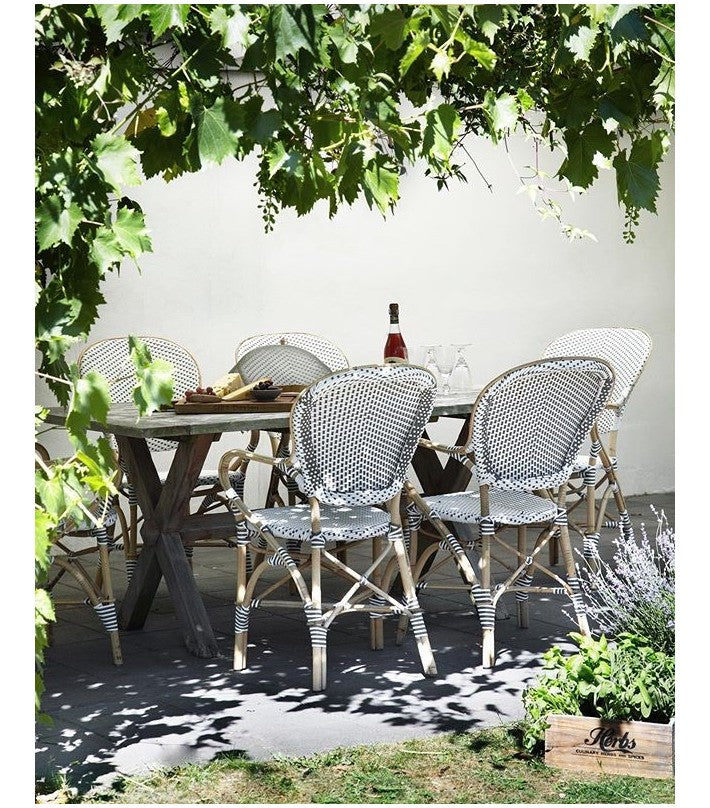 La silla Monique nos recuerda la silla de comedor clásica en el sentido más clásico. La silla tiene el marco de ratán más hermoso con un respaldo de ratán, sólo los devanados y el asiento de la silla son de fibras artificiales. Esto le permite disfrutar siempre del hermoso material natural mientras se sienta cómodamente en una silla resistente.