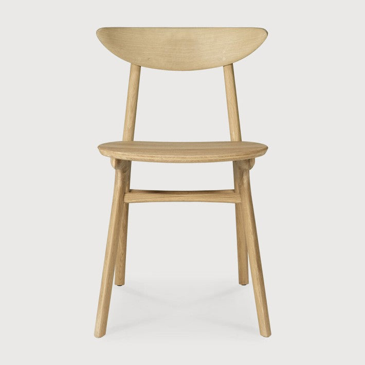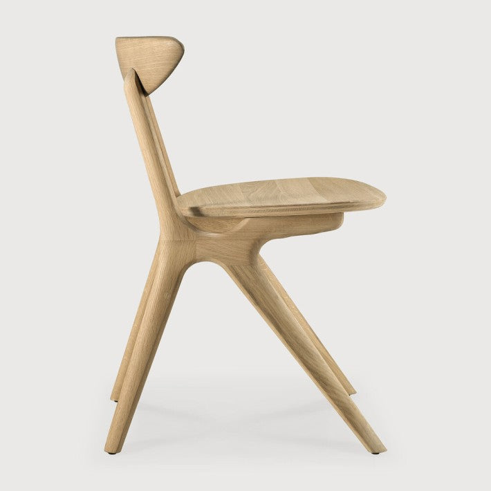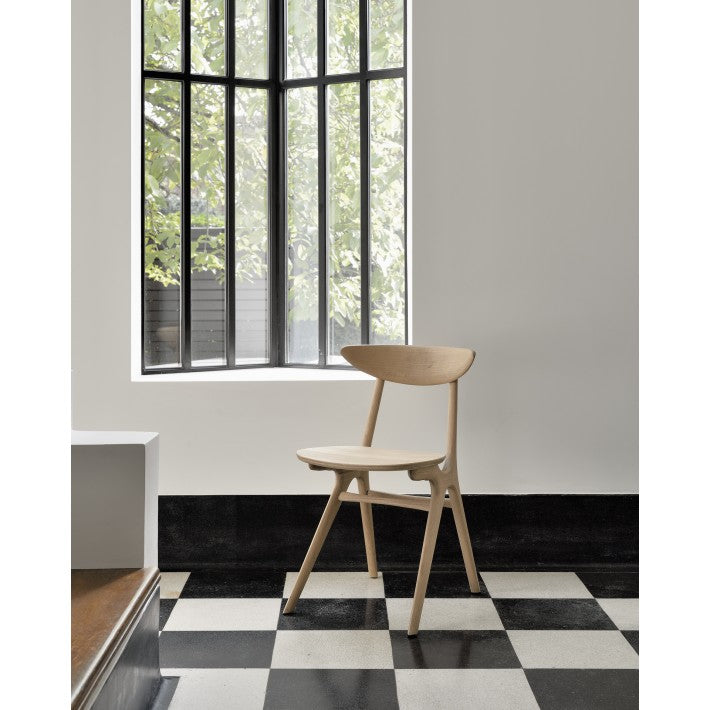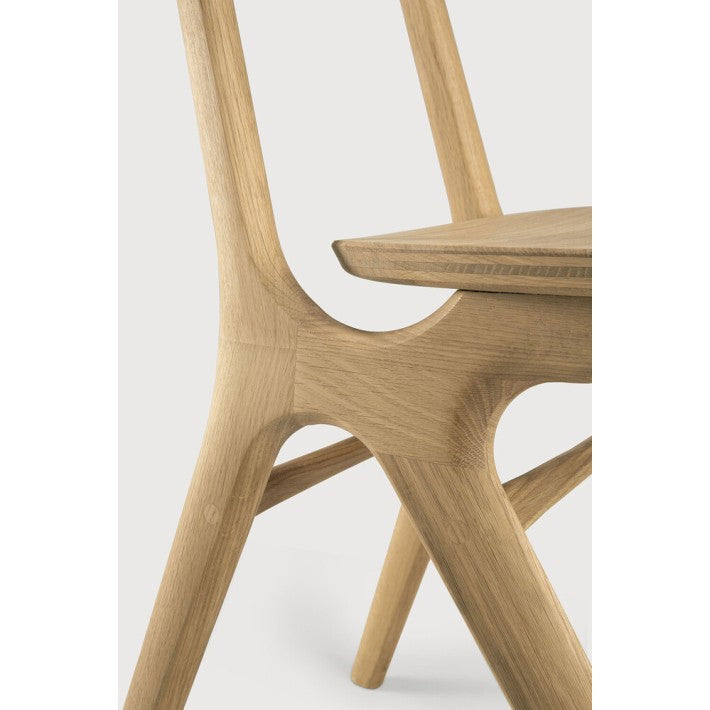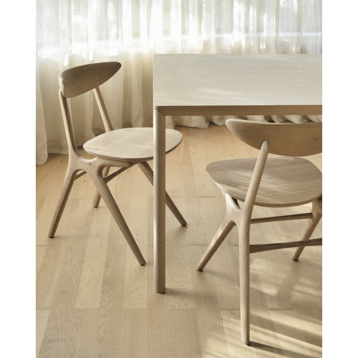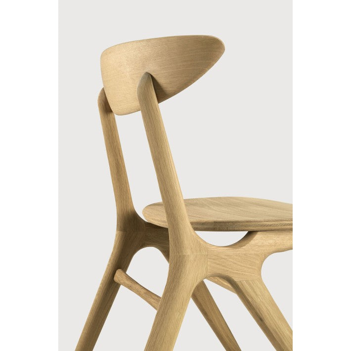 La belleza está en los ojos del observador. Con elegantes patas delanteras en ángulo y uniones fluidas y suaves, la silla de comedor Eye supone un diseño distintivo en asientos de madera maciza. Su respaldo curvado, reminiscencia de un parpadeo, inspiró el nombre de esta silla. Piense en la sutil elegancia con un toque de estilo. Diseñada por Alain van Havre.
