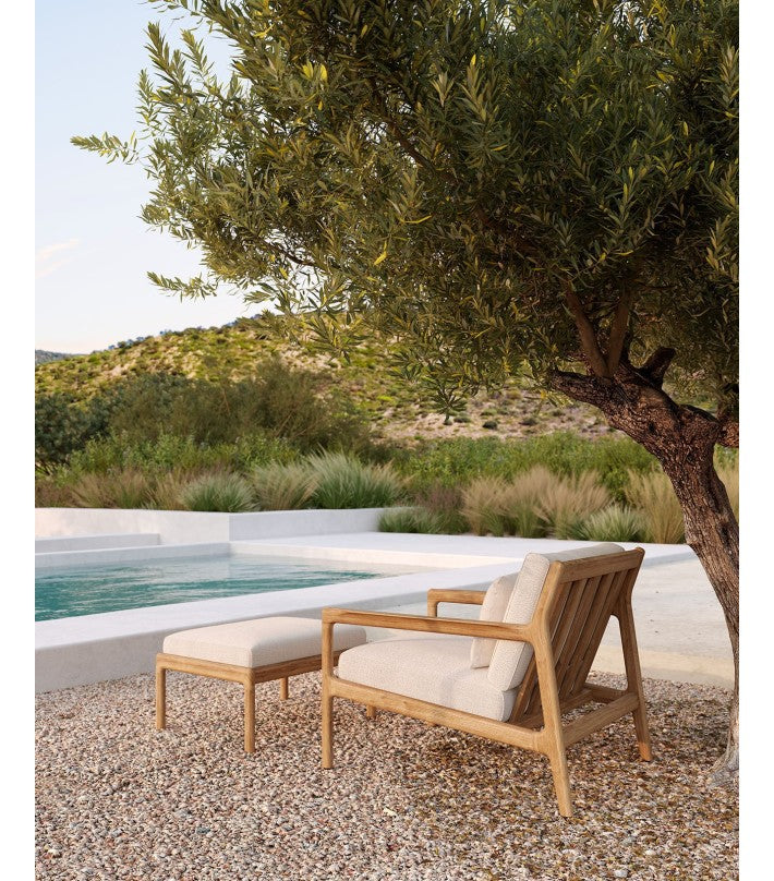 Con las mismas formas y curvas exuberantes que la colección de sofás Jack, el reposapiés para exteriores Jack es el acompañamiento perfecto para garantizar la comodidad y la elegancia cuando uno se relaja al aire libre.