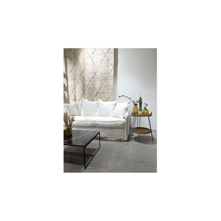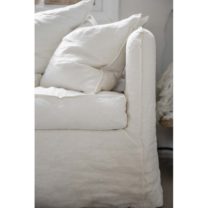 Sofá Cloud de Nomad Home. Cuando la pureza del lino se encuentra con la comodidad de las plumas. La costura pellizcada le da un carácter único al producto. Cuando la tela le da el estilo a tu sofá, apuesta por este lino en color blanco.