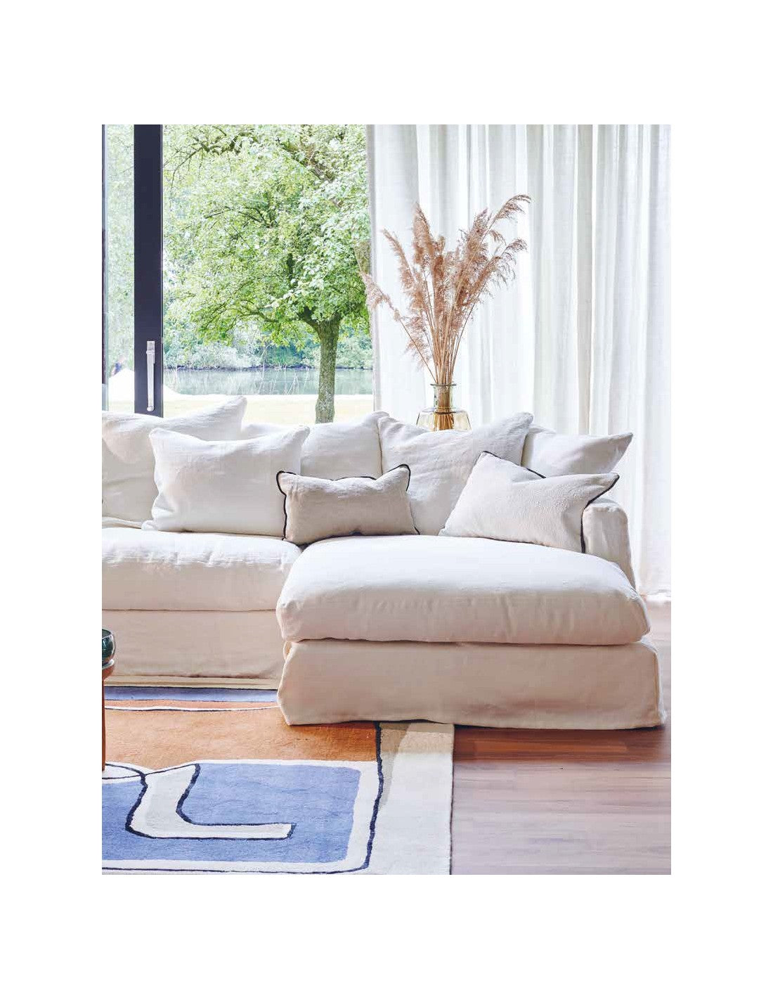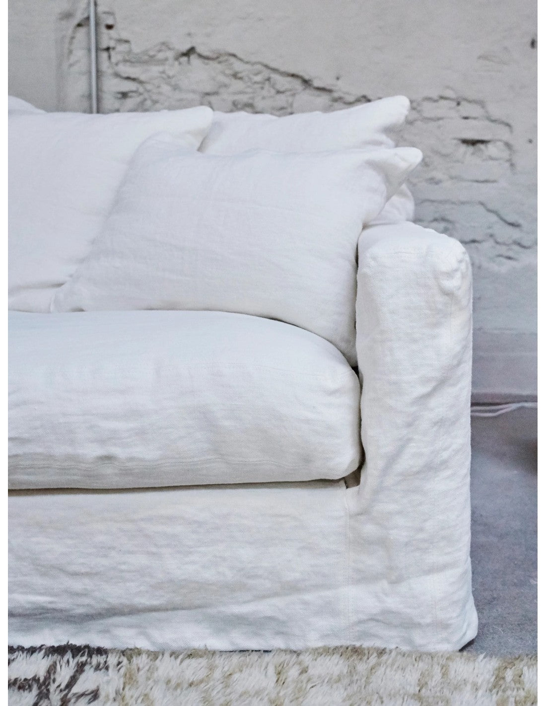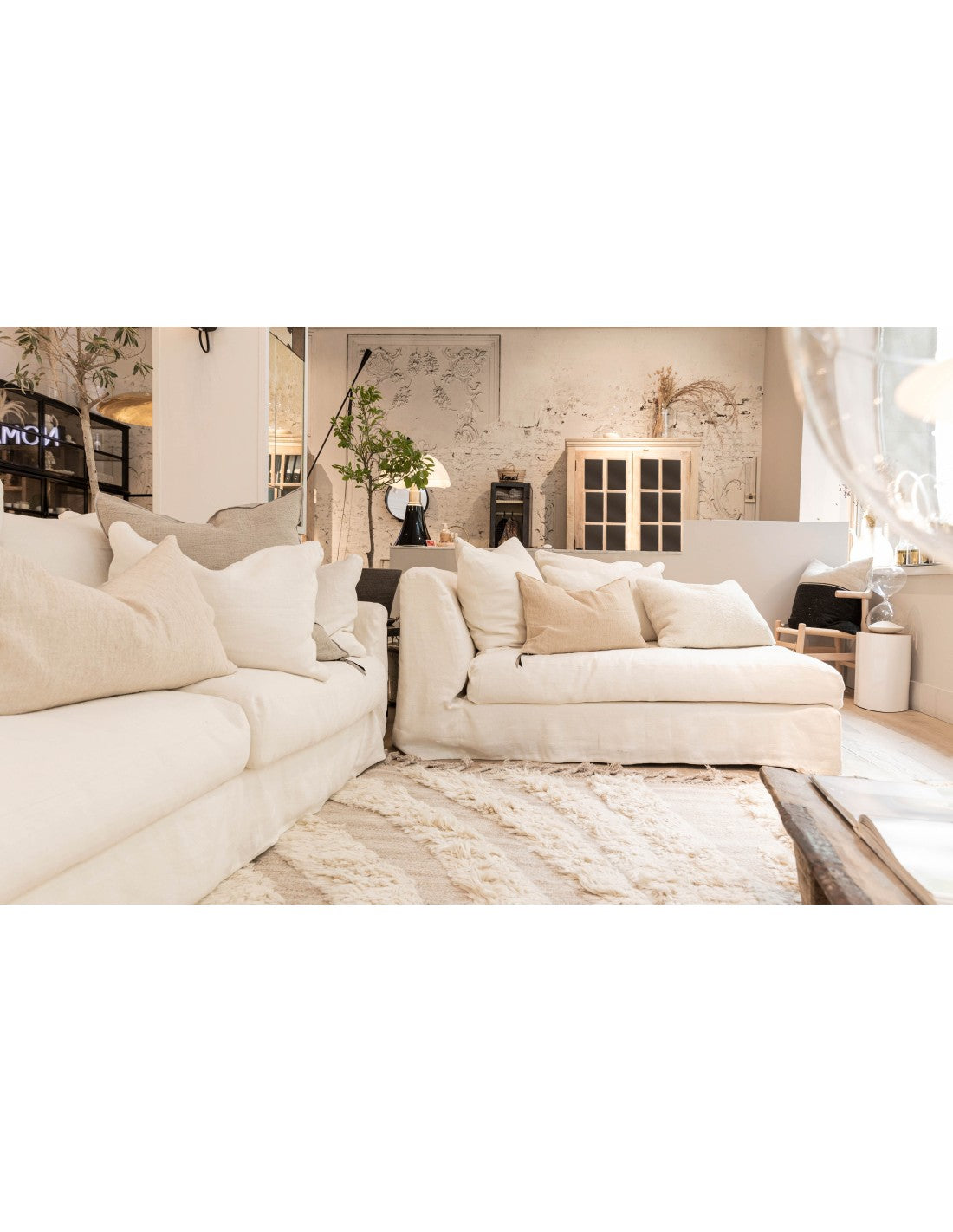 Sofá Marlin de Nomad Home. Un sofá de alta calidad con una expresión exclusiva y a la vez relajada. La funda suelta en lino junto con muchos cojines cómodos para el respaldo le dan al sofá un carácter suave y acogedor. Toda la cubierta es extraíble y se puede limpiar en seco. Posibilidad de varios tamaños y como loveseat.