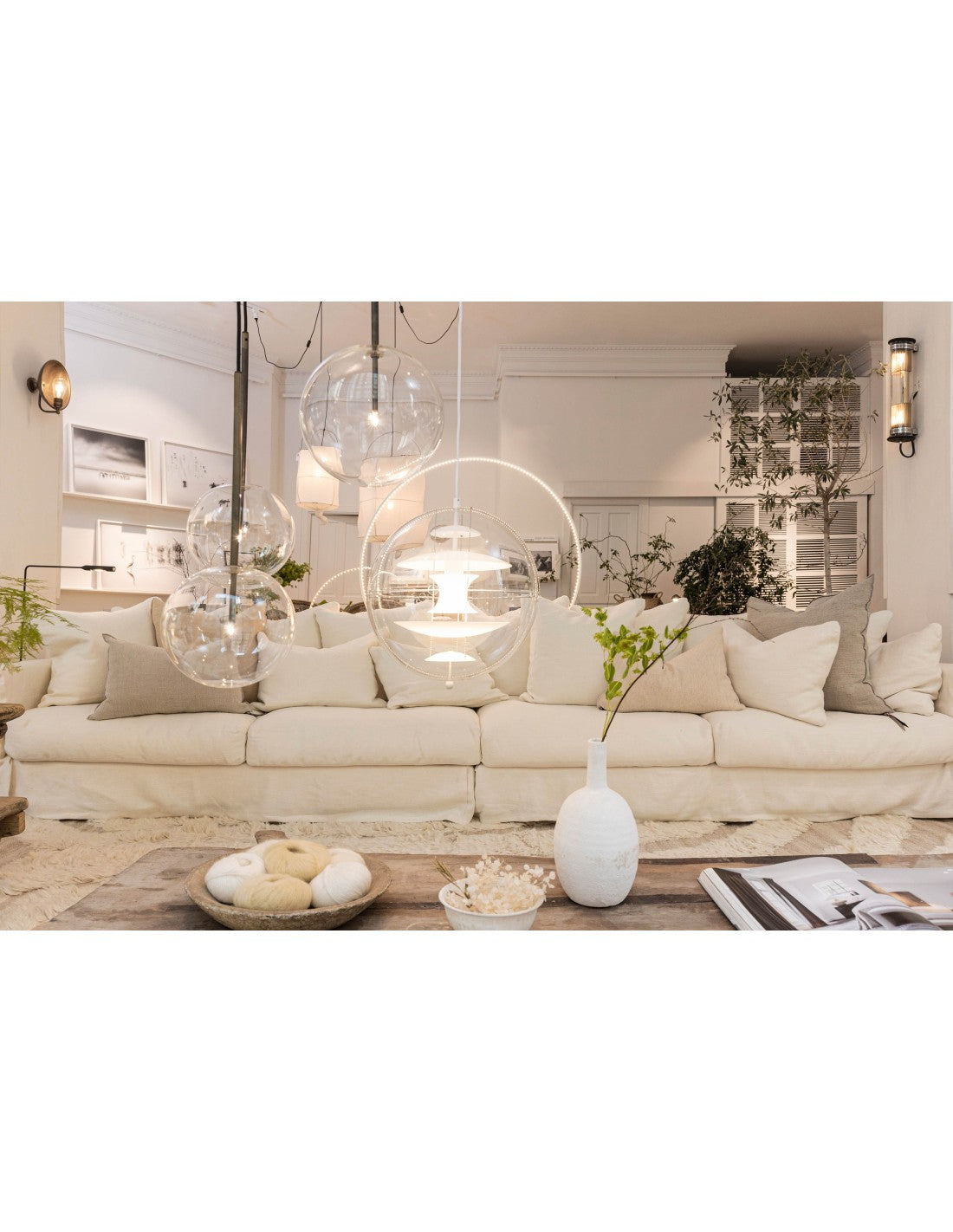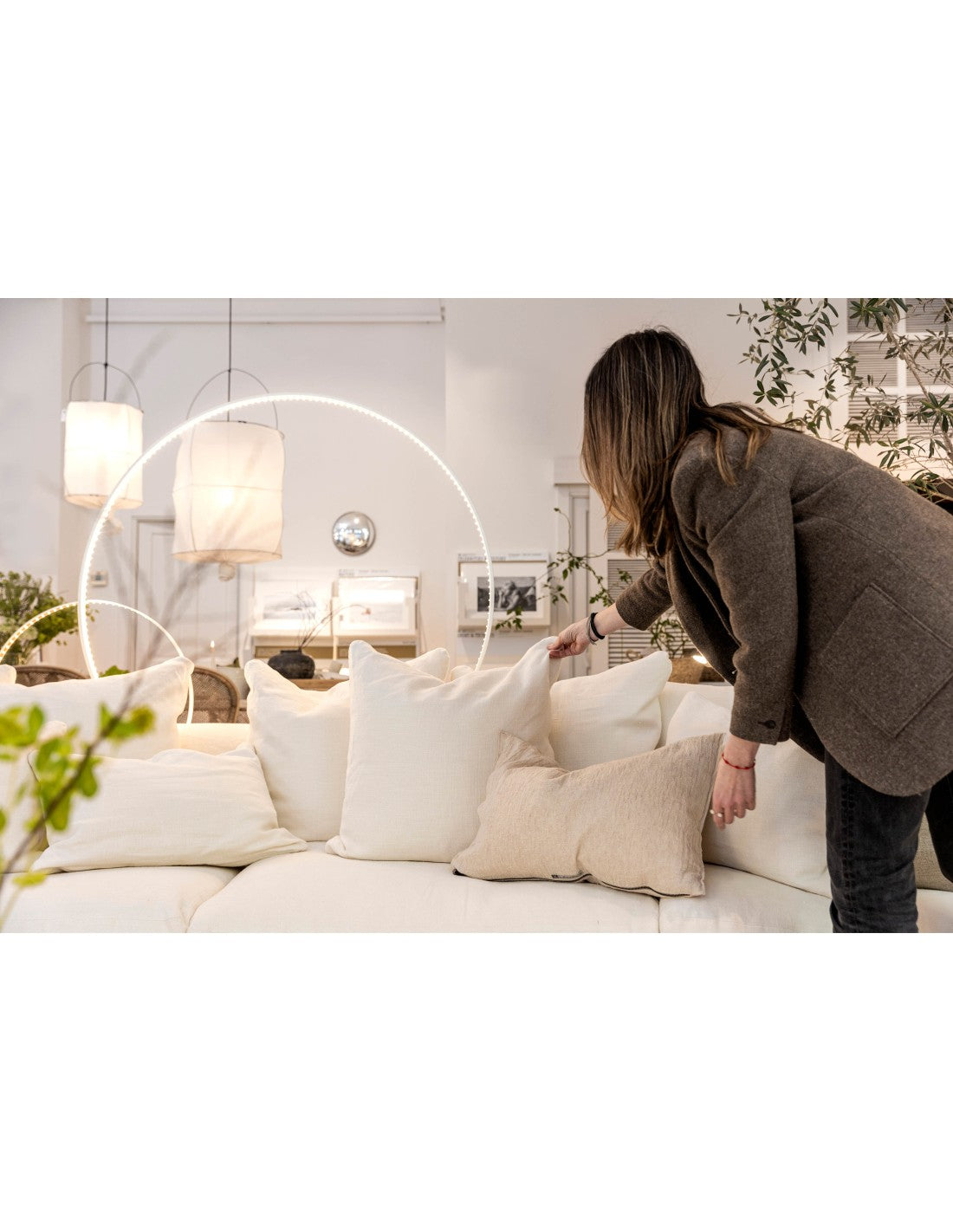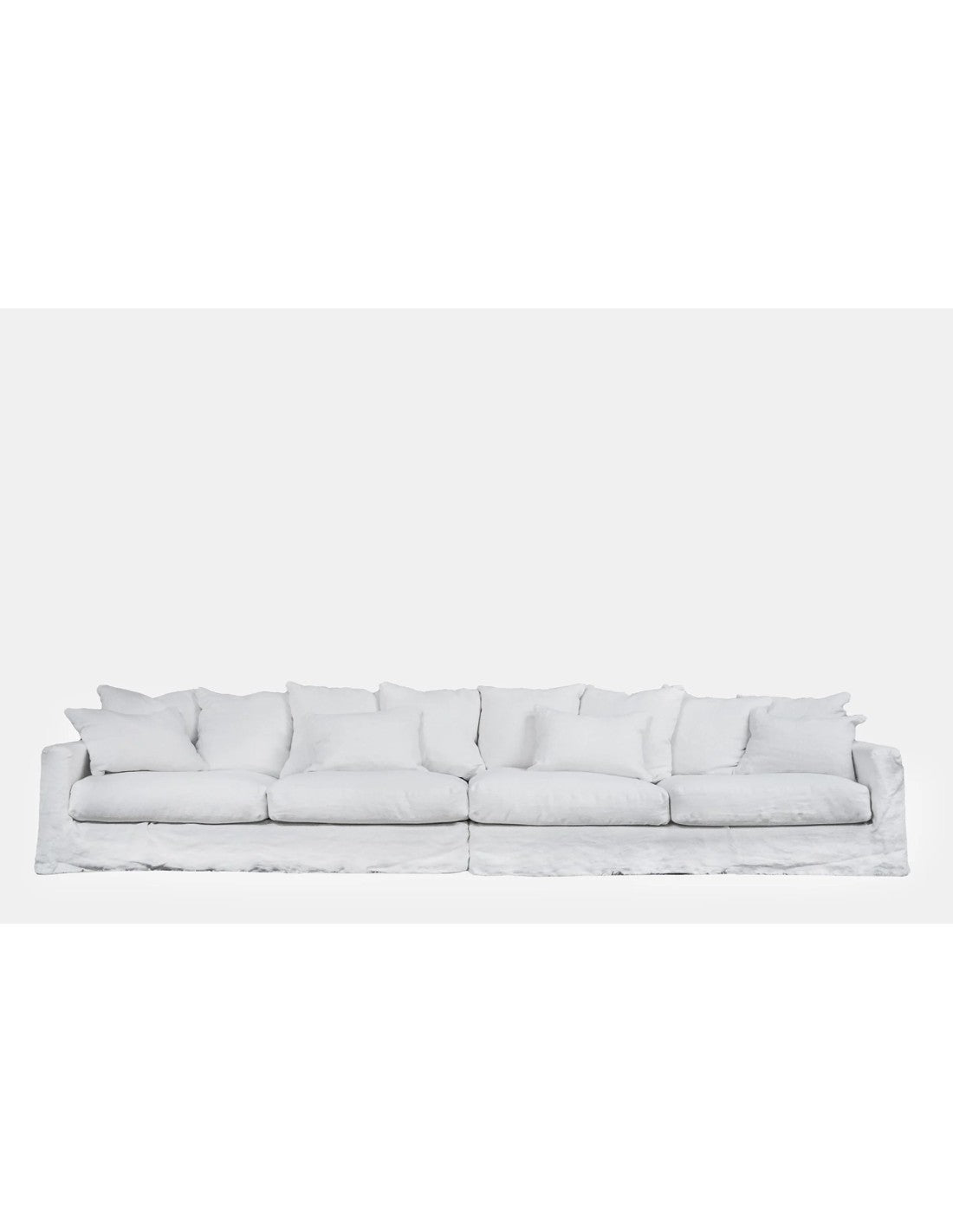 Sofá Marlin de Nomad Home. Un sofá de alta calidad con una expresión exclusiva y a la vez relajada. La funda suelta en lino junto con muchos cojines cómodos para el respaldo le dan al sofá un carácter suave y acogedor. Toda la cubierta es extraíble y se puede limpiar en seco. Posibilidad de varios tamaños y como loveseat.