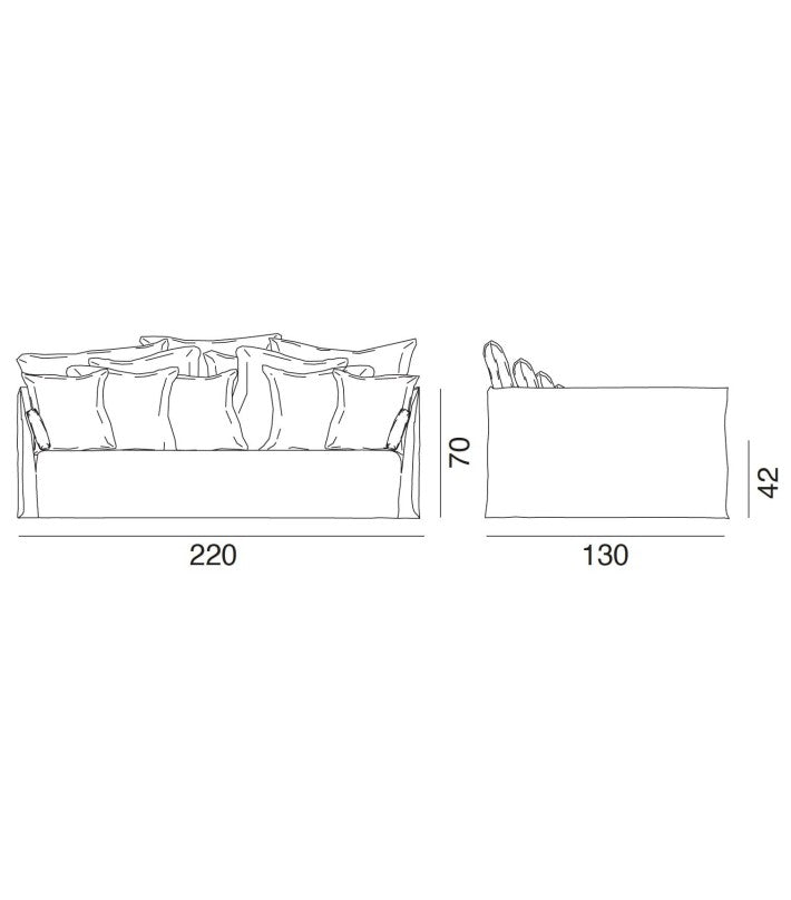 - Tres cojines de respaldo de 80x80cm, cuatro de 60x60cm y cuatro de 50x50cn, en Dacrón y plumón