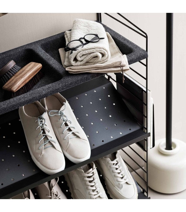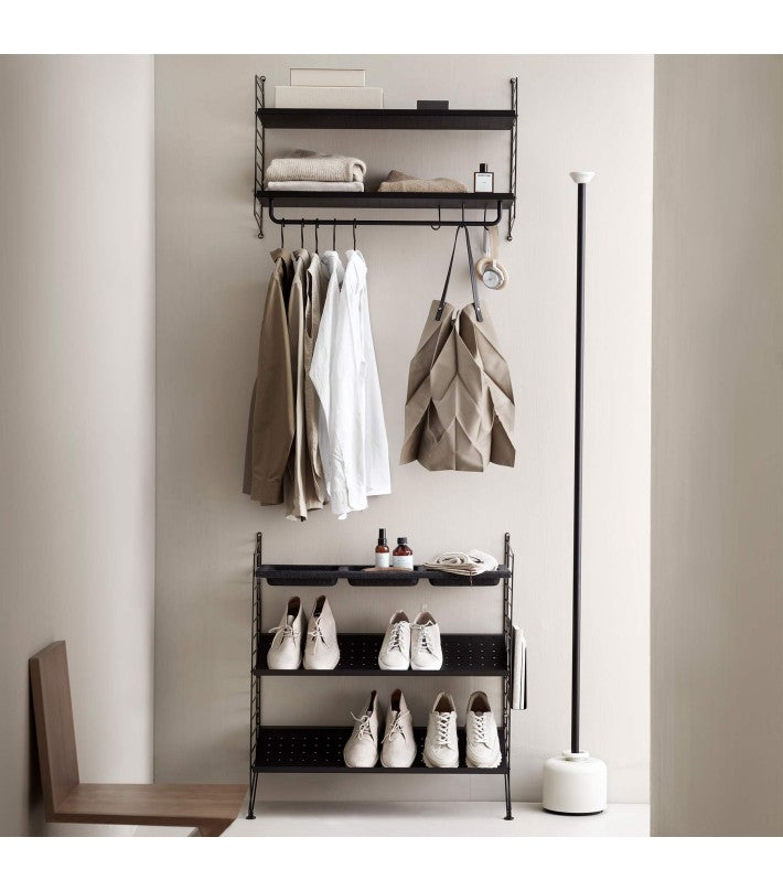String System estante metal zapatero. Disponibles en color blanco, gris o negro. Su profundidad es de 30 cm.