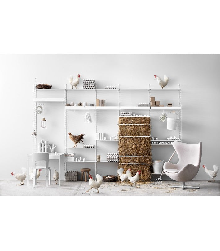Estantería de pared compuesta por tres estantes y dos paneles laterales. Disponible en varios modelos.