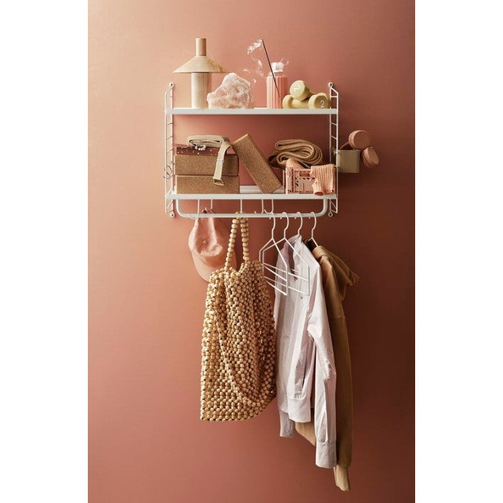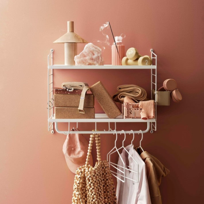 Las barras de String para los estantes de metal podrás utilizarlas para colgar tus prendas favoritas, utensilios de cocina, toallas. Disponibles en tres tamaños diferentes.