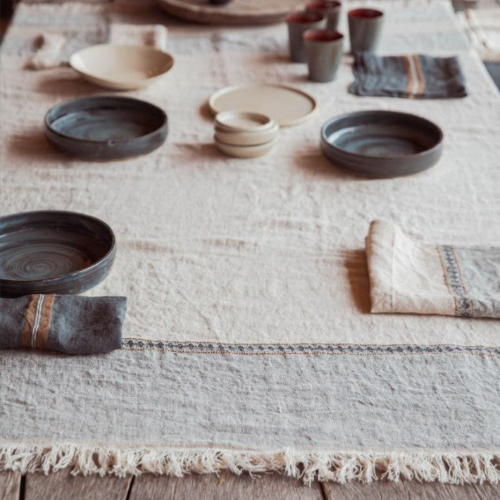 Este es un producto artesanal, fabricado con hilos de lino únicos. Las variaciones e imperfecciones en el tejido y los flecos son normales.