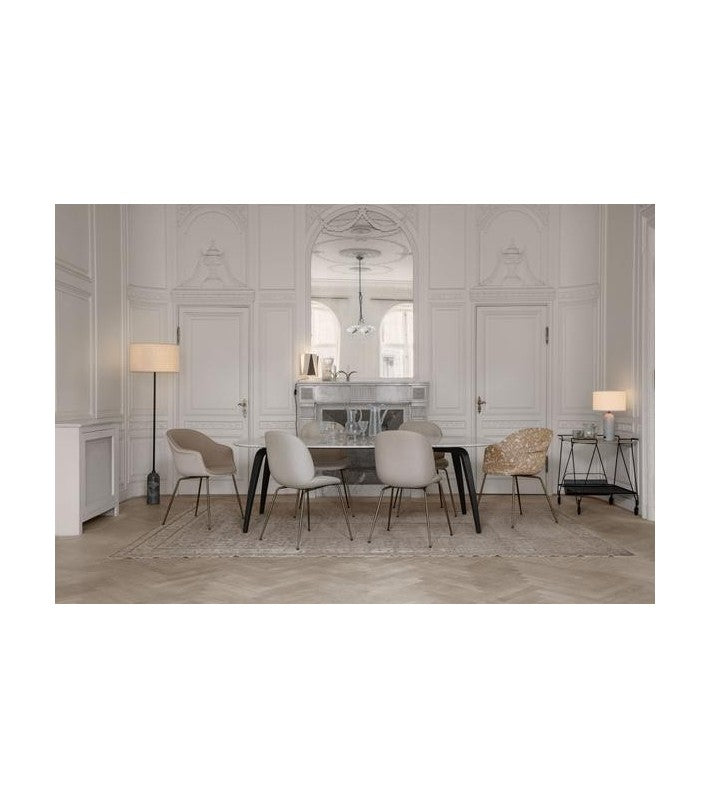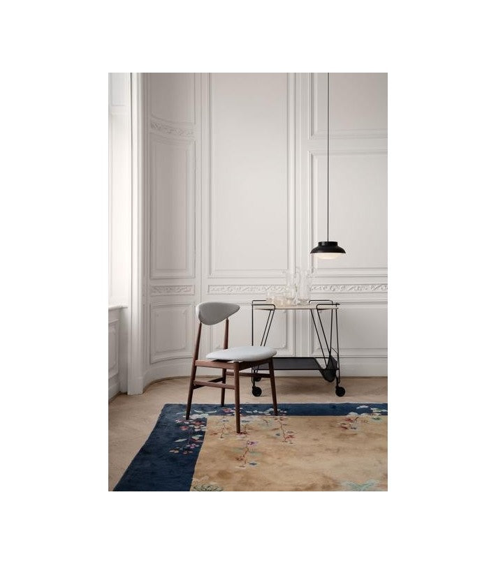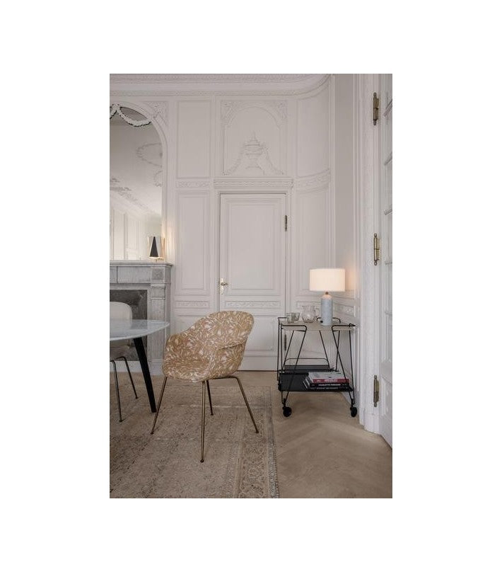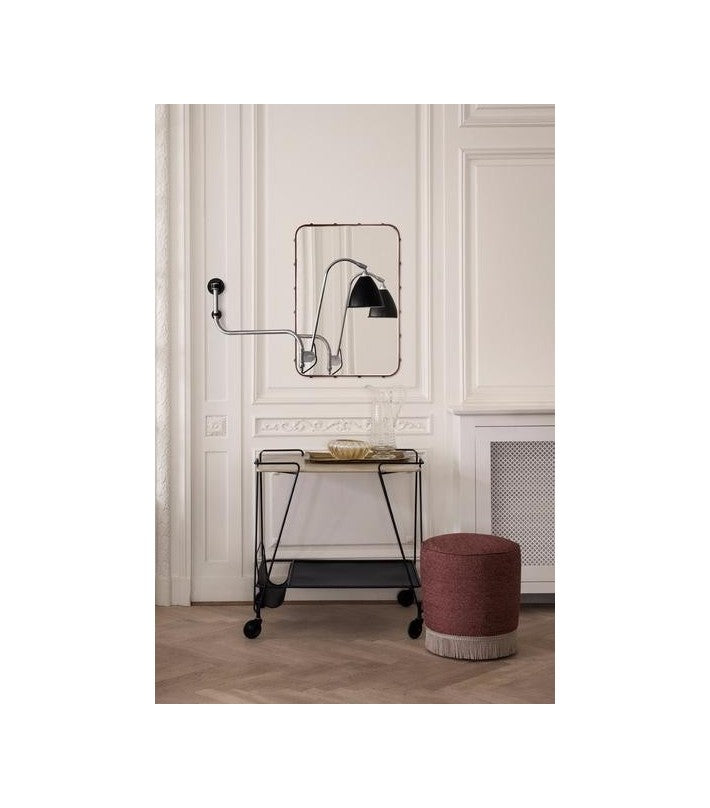 El maestro y fundador de la innovadora y revolucionaria técnica Rigitulle, donde el metal perforado se combina con tubos de metal, Mathieu Matégot, diseñó su carrito de té entre 1953 y 1954. El espacioso Trolley Matégot está adornado con dos bandejas, la parte superior disponible en diferentes colores. y el inferior en negro e incluye un soporte para periódico que demuestra, con su diseño de metal doblado, la fuerza de la técnica de ser flexible como el tul y fuerte como el metal. La ligereza que evoca es mejorada por sus ruedas giratorias y la hace flotar por el suelo.