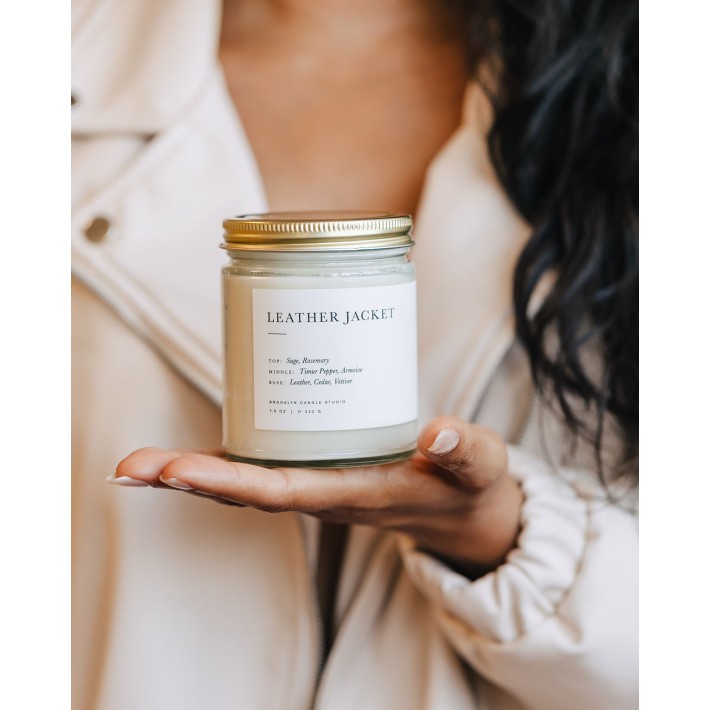 La colección minimalista presenta elegantes frascos de vidrio transparente de lados rectos con etiquetas minimalistas modernas. Perfecto junto a un jarrón lleno de flores recién recogidas o en una mesita de noche o mesa de café. Las tapas de oro cepillado hacen que su vela sea ideal para viajar.
