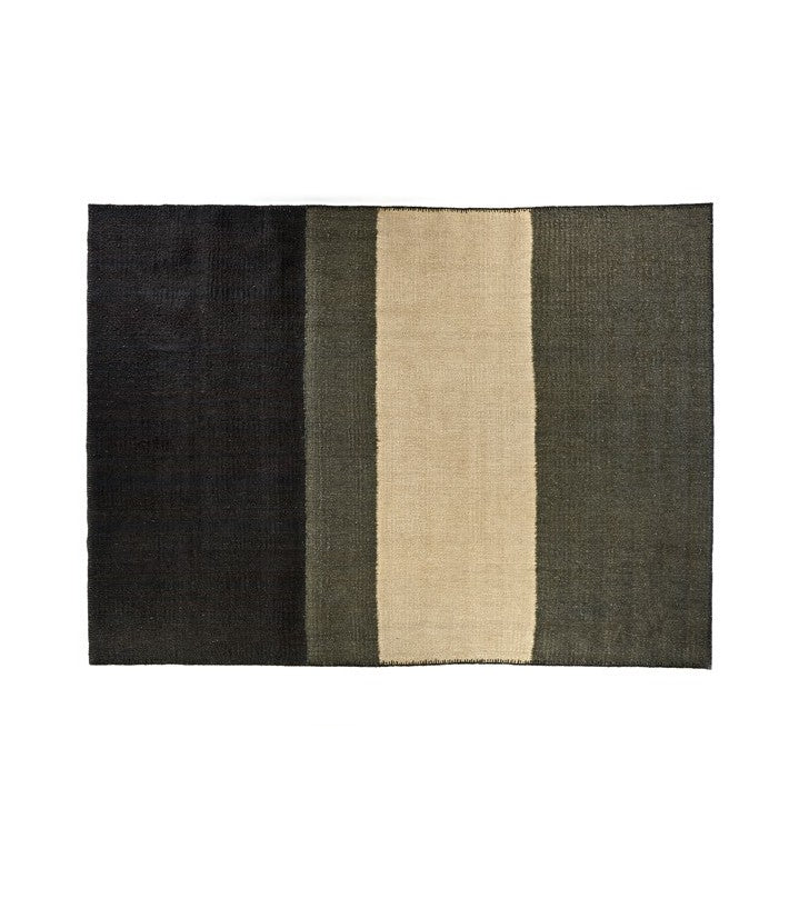 Alfombra rectangular a rayas de tela.