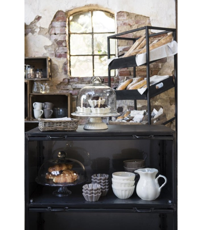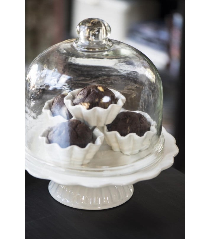 Plato blanco con pie, en acabado cerámico