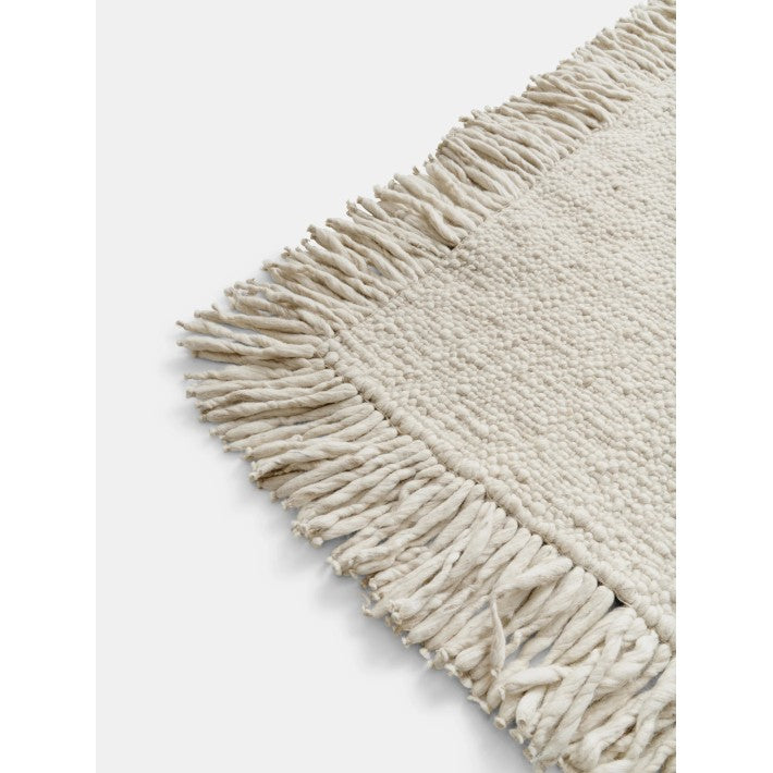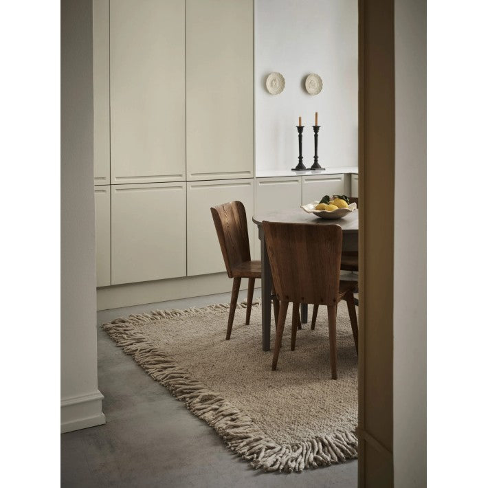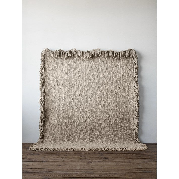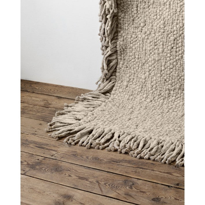 La alfombra está tejida en lana natural de Nueva Zelanda mixta y sin blanquear.
