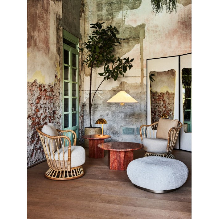 Conocido por muchos como 'el hombre que iluminó Finlandia', el legendario diseñador y herrero Paavo Tynell es una de las figuras destacadas del diseño industrial del siglo XX. Un diseño clásico de Tynell de la década de 1950, la lámpara colgante de 1967 expande el lenguaje de diseño desarrollado en 1948 para la lámpara colgante de 1965.