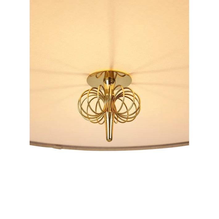 La lámpara de 1967 se caracteriza por una pantalla cónica de tela que emite una cálida luz ambiental, con los característicos herrajes de latón de Tynell añadiendo una expresión sutil y de alta calidad.