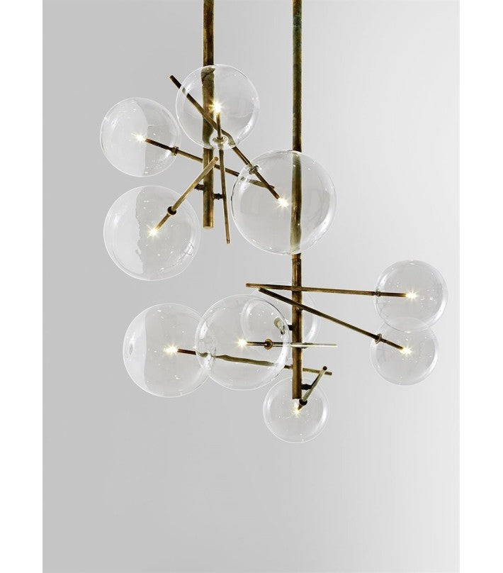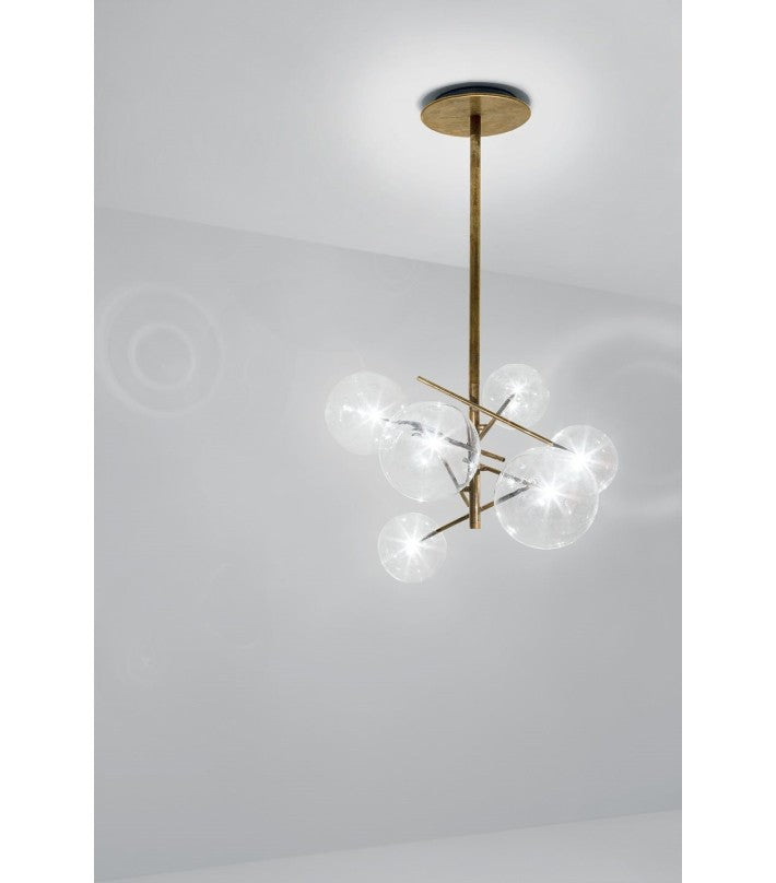 El latón está naturalmente manchado y desigual. Esta artesanía le da a cada pieza una singularidad particular, haciéndola exclusiva. Luz regulable La altura se puede hacer a medida, desde un mínimo de 85 cm (Bolle 6) y 73 cm (Bolle 4) hasta un máximo de 600 cm (incluido el cuerpo luminoso).