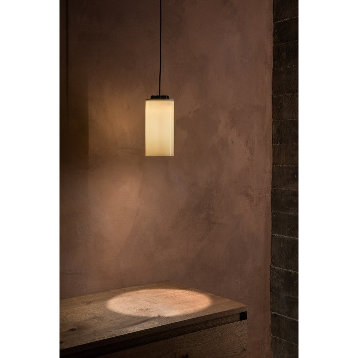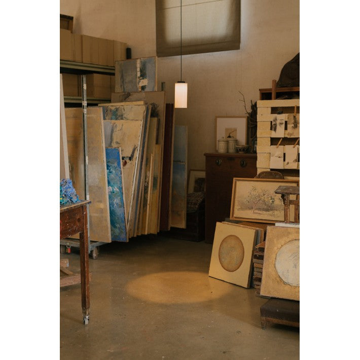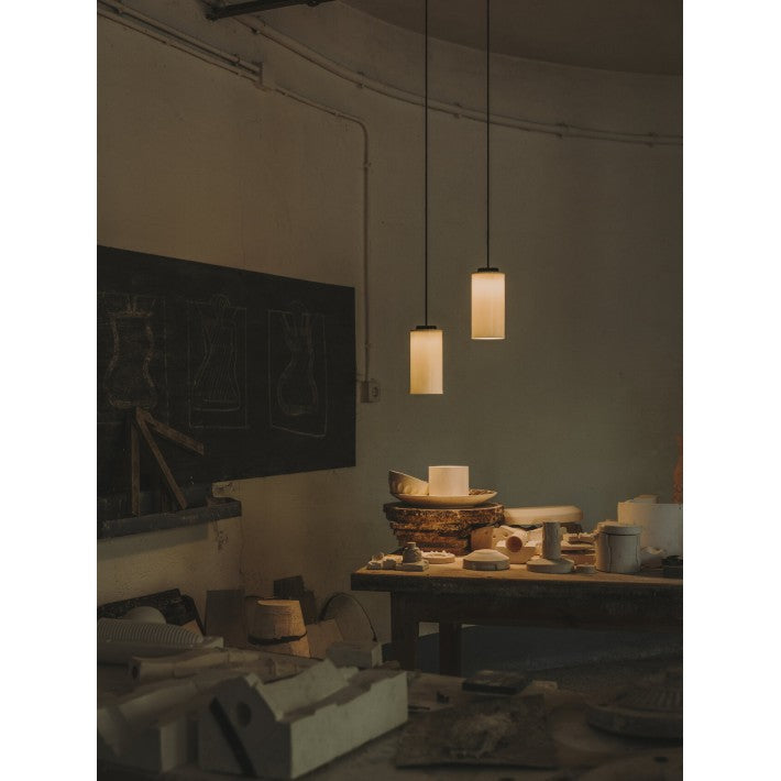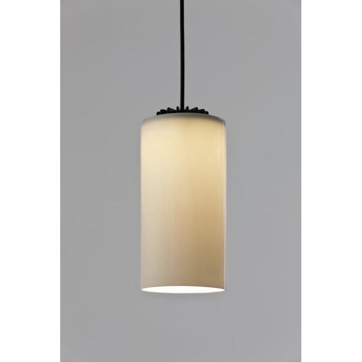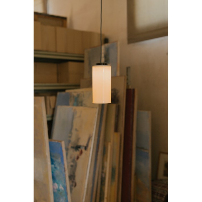 La lámpara está compuesta por un cable de PVC blanco de 1 metro de largo, un rosetón de metal blanco, el casquillo E27 y la pantalla. La bombilla se vende aparte ya que existen diferentes dimensiones y diseños.