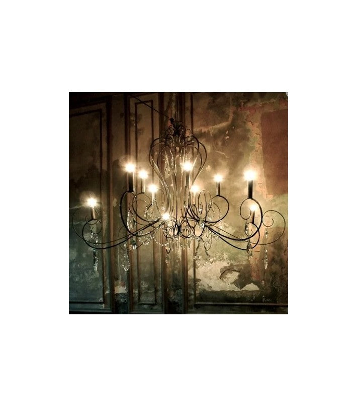 Lámpara hecha a mano con alambre y colgantes de cristal