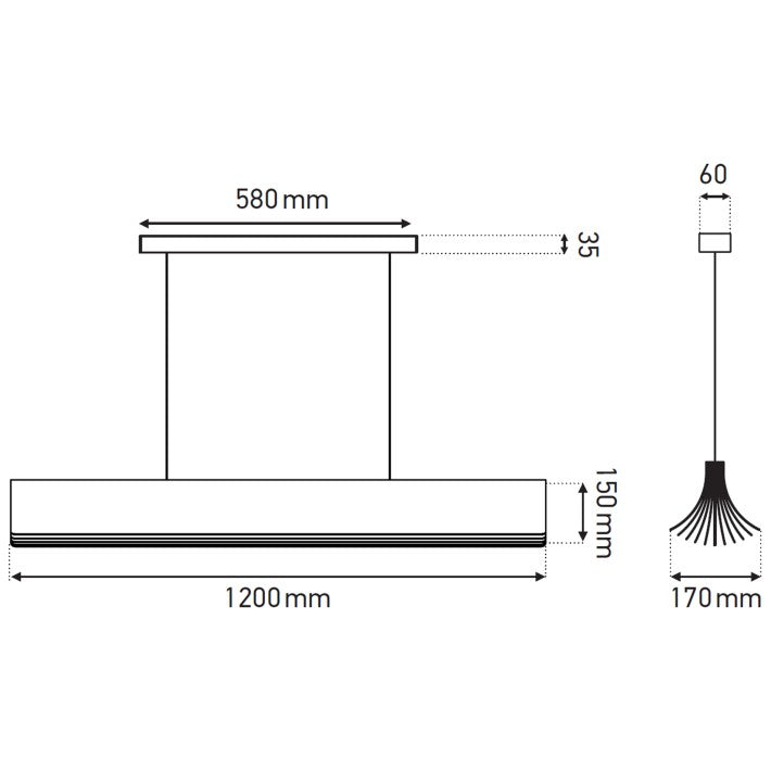 La suspensión RESPIRO 1200 es un luminario de Clase I, garantizando máxima seguridad durante su uso. Con un peso de 8 kg, permanece estable y seguro una vez instalado. También está protegido contra el polvo y objetos sólidos con su clasificación IP20.
