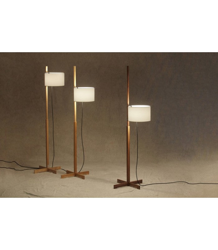 Esta tal vez sea la obra más celebrada de uno de los principales maestros pioneros del diseño industrial en España. Esta lámpara formó parte de la primera colección de TRAMO ("Trabajos Molestos"), la empresa que fundó Miguel Milá para auto-producir su obra en tiempos de posguerra en España, cuando empezaba rudimentariamente con una profesión que luego desarrollaría con maestría, la de diseñador pre-industrial, buscando soluciones adecuadas con la tecnología disponible. Tra-bajos Mo-lestos, los nombres de Milá son como sus objetos: su profundidad radica en su sencillez. Y esta representante de la familia TM, Tra-mo Mó-vil, esta vez en Madera, se presenta como la alternativa informal, o blue jeans, de la misma.