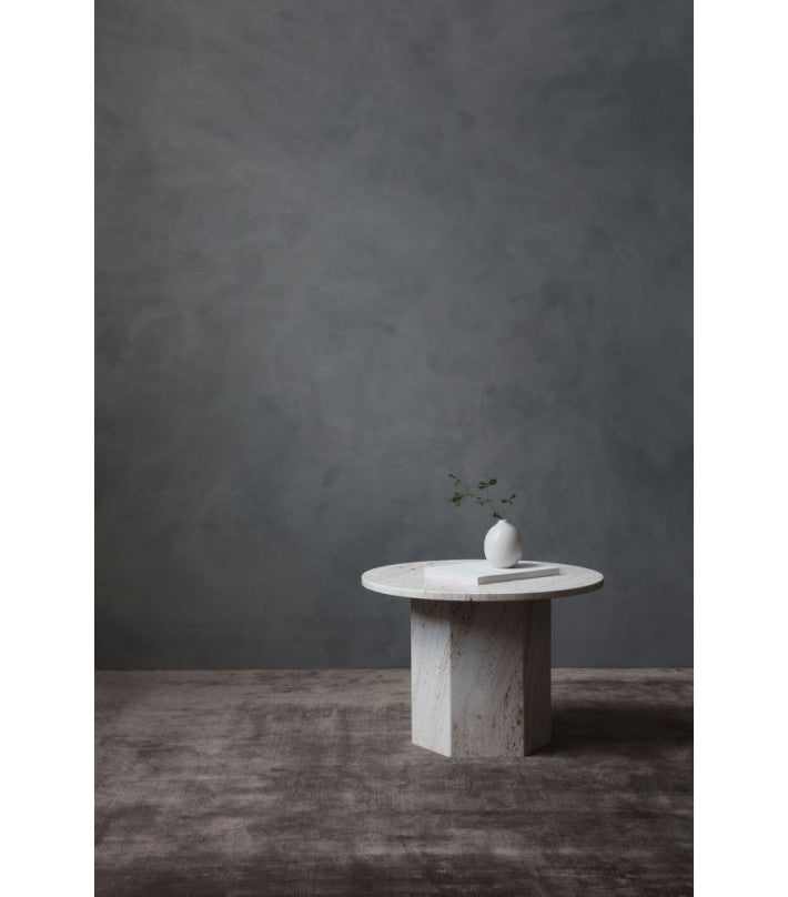 Hecho en Italia a partir de piedra travertina, la forma monolítica enfatiza la materialidad de la piedra, la belleza natural de sus venas y la textura vibrante de su pátina única, en la que se puede descubrir un nuevo detalle con cada uso.