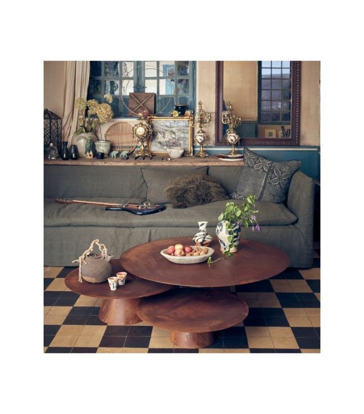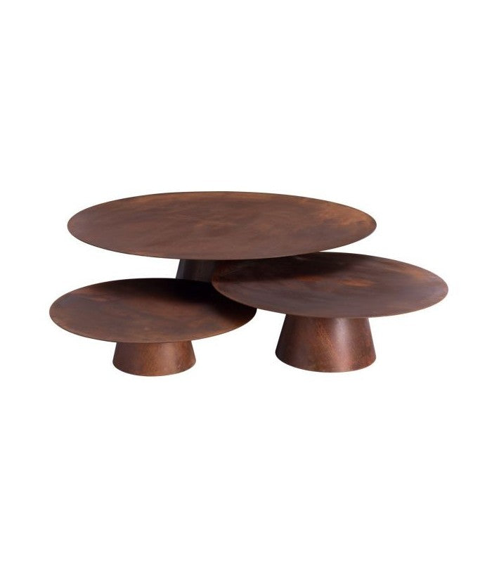 La firma Maison de Vacances nos vuelve a sorprender con su nueva colección. Presentan las mesas de centro Wabi Sabi: conjunto de mesas en acabado acero oxidado.