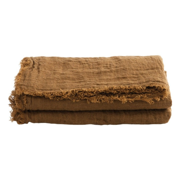 Maravilloso plaid de lino con flecos de la firma francesa Maison de Vacances. Este producto es una tela de gasa de lino lavado de alta calidad, confeccionada con hilo de dos tonos y con cuatro bordes con flecos. Viene en dos tamaños: 150 x 250 cm y 150 x 300 cm, y está hecho en Francia.