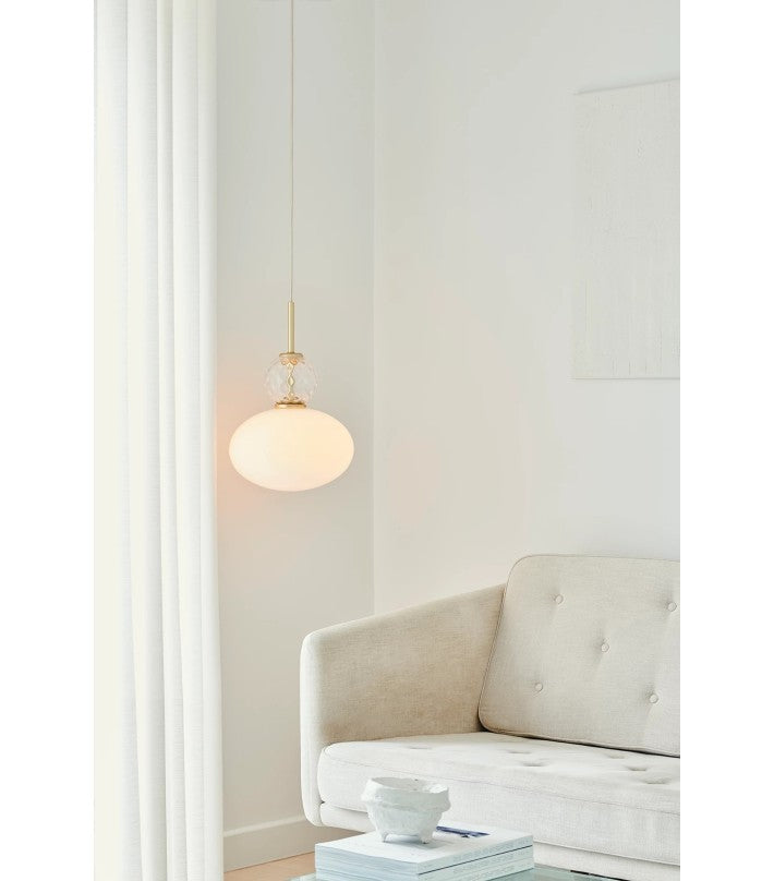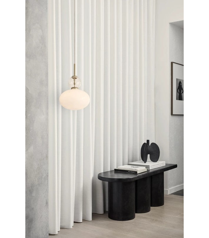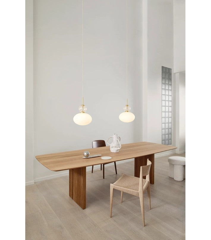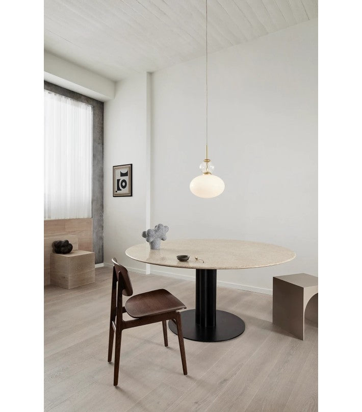 Rizzatto 32 da una luz suave y uniforme, por lo que es ideal sobre una mesa de comedor o sofá. También es adecuado para el dormitorio o el pasillo. El colgante es ajustable en altura. La colección Rizzatto está nominada para el Danish Design Award 2021.
