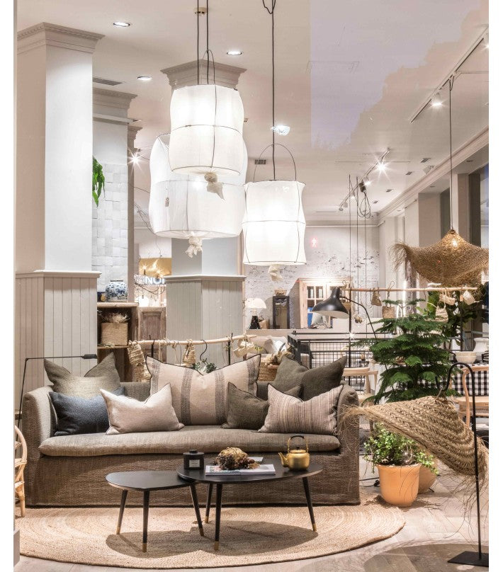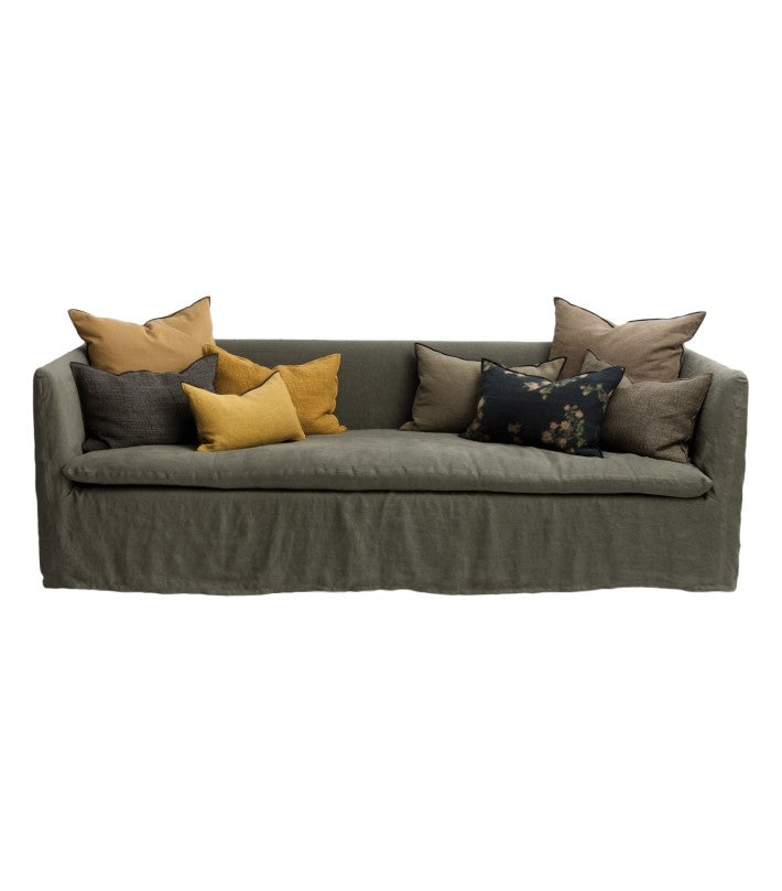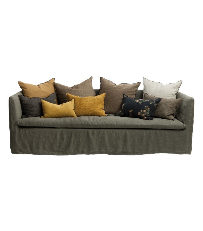 Funda de lino lavado 100%, totalemente desenfundable. Los almohadones no están incluidos, recomendamos los almohadones Formentera de 65x65cm y de 40x60cm.