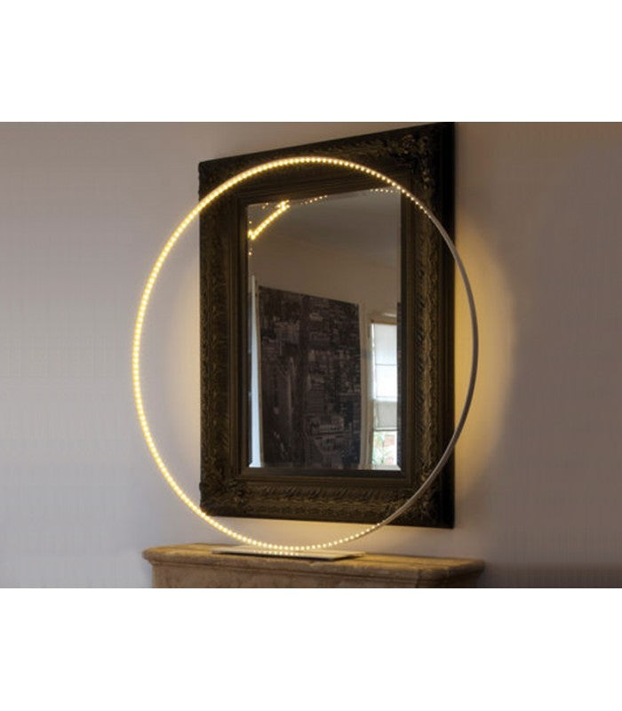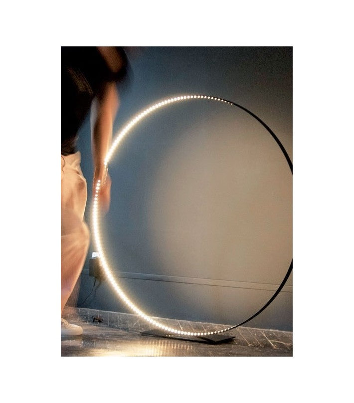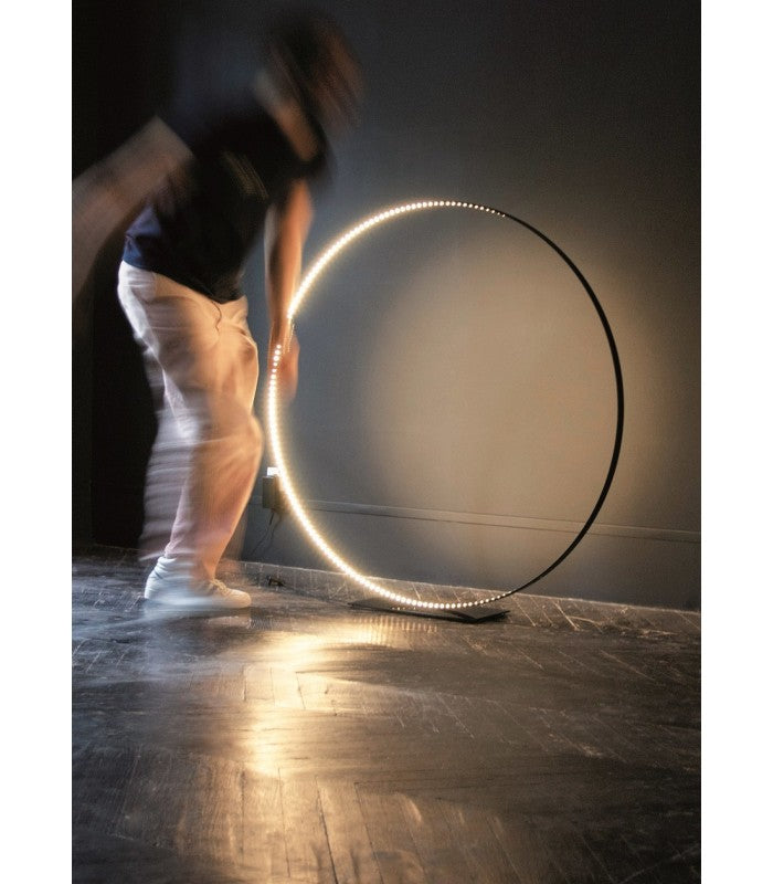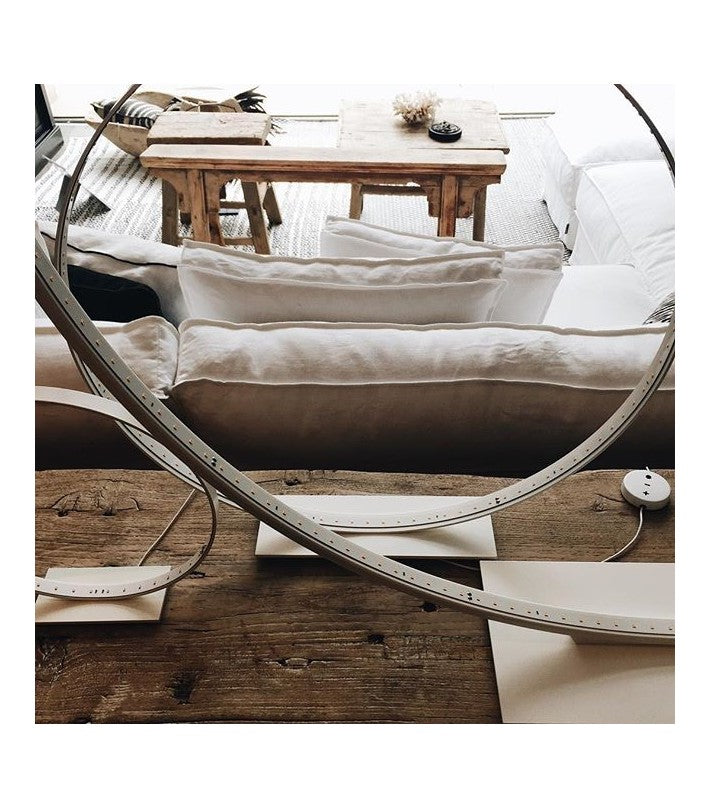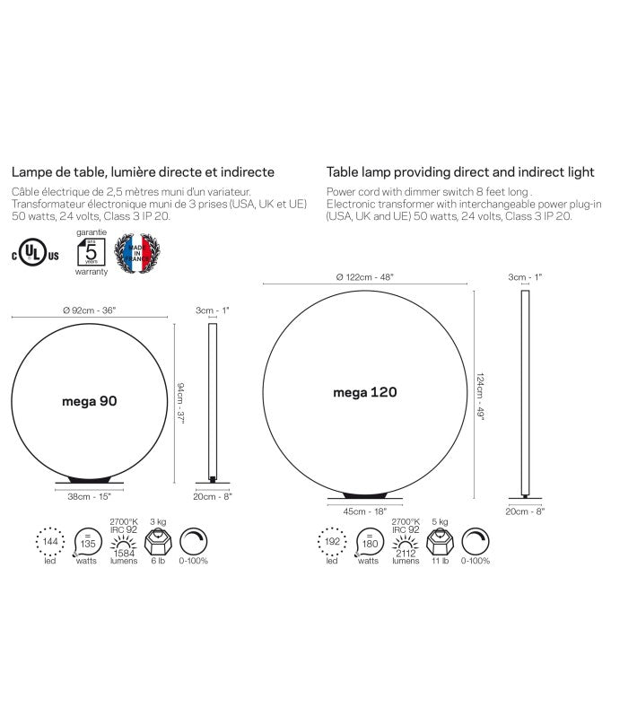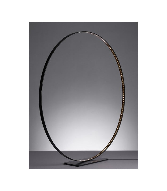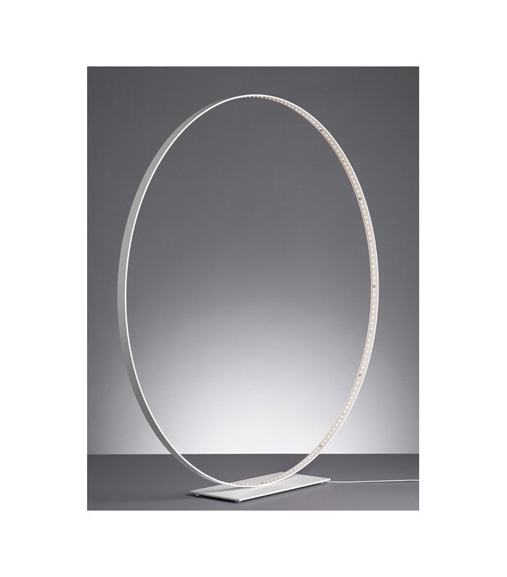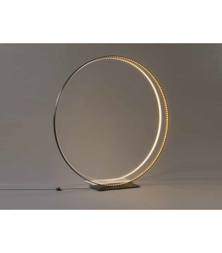 Materiales: Aluminio, acero con recubrimiento en polvo. Interruptor regulador de cable de la lámpara. Transformador electrónico con enchufe de alimentación intercambiable (EE.UU., Reino Unido y UE). Cable de alimentación de 8 pies de largo. Círculo de aluminio pintado con epoxi y base de acero pintado con epoxi.