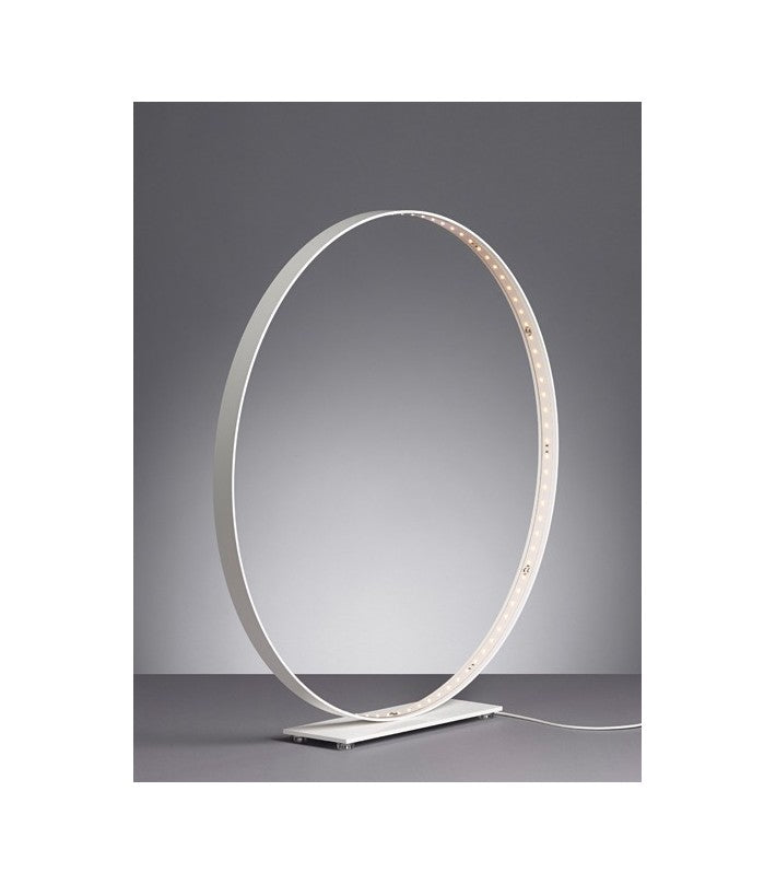 Materiales: Aluminio, acero con recubrimiento en polvo. Interruptor regulador de cable de la lámpara. Transformador electrónico con enchufe de alimentación intercambiable (EE.UU., Reino Unido y UE). Cable de alimentación de 8 pies de largo. Círculo de aluminio pintado con epoxi y base de acero pintado con epoxi.